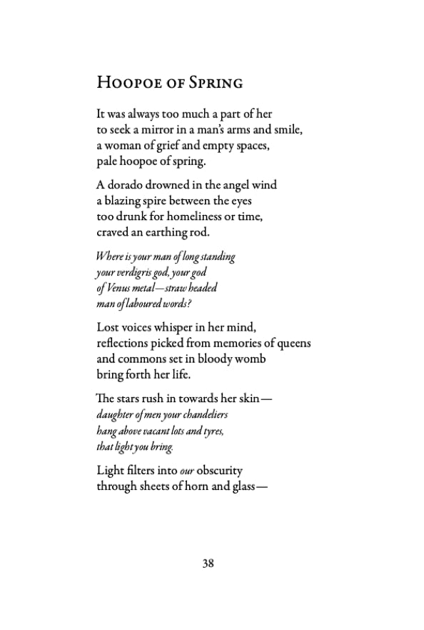 “Defiantly out of fashion, these poems sing out of our present darkness and yet, at the same time, evoke the redemptive power of the numinous often just lying below the surface.”